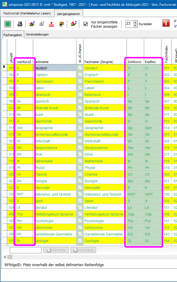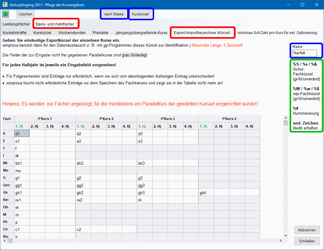 Dabei ist während dieses Zusammenspiels selbsverständlich verboten, in den beteiligten Programmen einseitig Änderungen bei den Kurs- und Kurswahldaten samt zugehörigen Kürzeln durchzuführen.