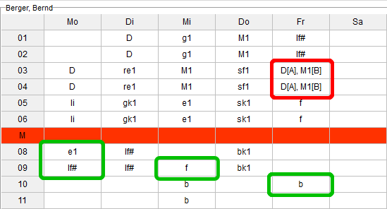 Grün gekennzeichnet sind weitere mögliche Kandidaten für eine entsprechende A/B-Wochenverplanung.
