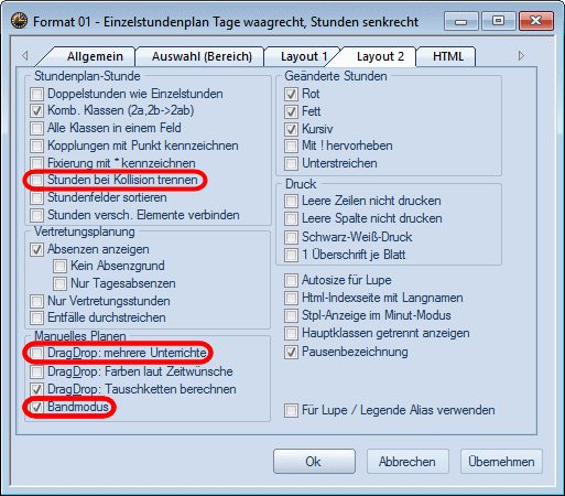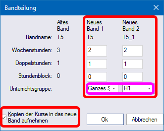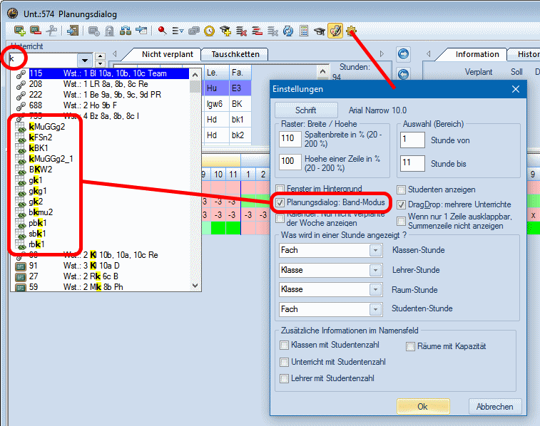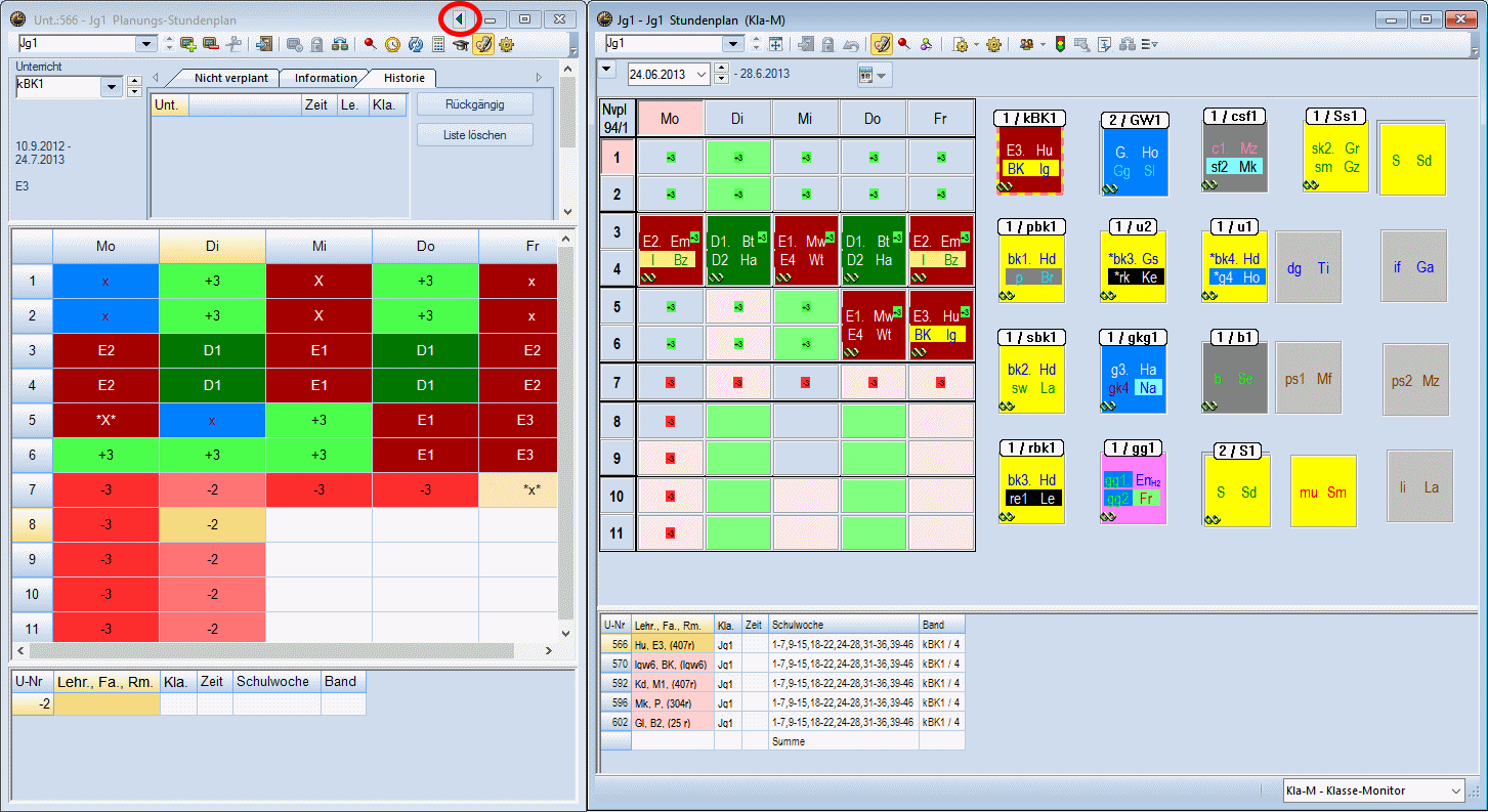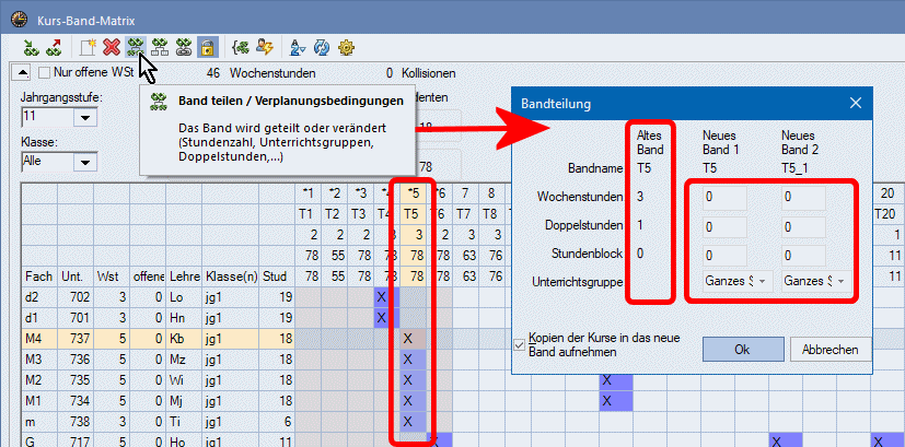 Fixierung von Bändern), werden sie während der automatischen Stundenplan-Optimierung individuell angepasst. Man braucht also nicht in Bänder und Klassenverbandsunterricht zu trennen.