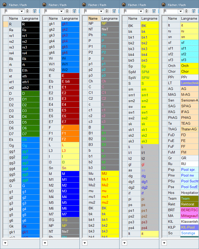 Wenn aber die oben aufgeführten vier Aufgaben von mehreren Mitarbeitern mit streng getrennten Verantwortlichkeiten bearbeitet werden, ist sicher zu stellen, dass die in winprosa und Untis diesbezüglich vorhandenen Namenskonventionen auch sicher übereinstimmend eingehalten und kommuniziert werden.