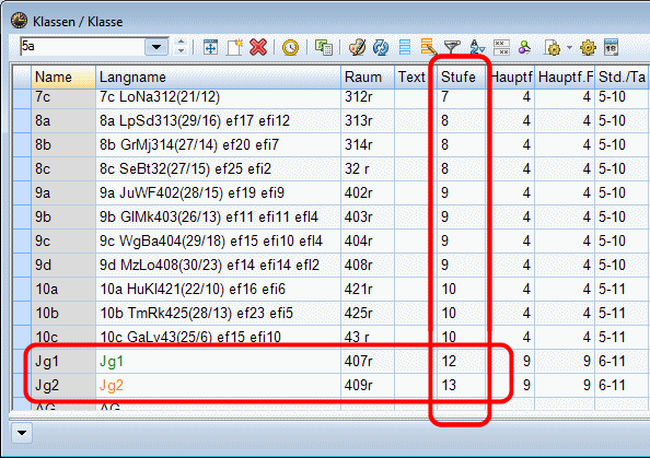 Sie müssen den Import also mit der einmal erzeugten Datei aus Untis zweimal in winprosa ausführen, jeweils getrennt für beide Jahrgangsstufen, aber immer bei aktivem Planungsfenster.
