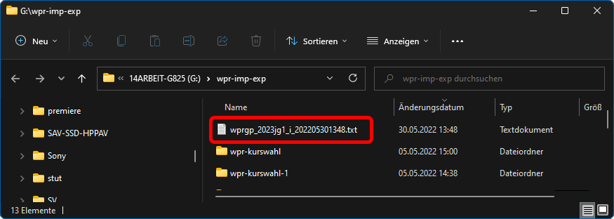 Im Bsp. heißt sie wprgp_2023jg1_i_202205301348.txt mit der Bedeutung Jahrgang und Erstellungsdatum.