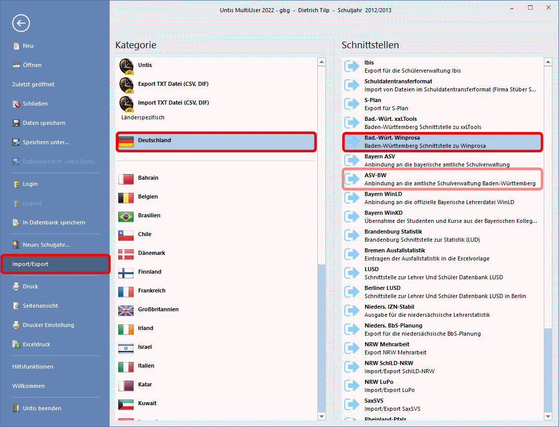 Rufen Sie in Untis den Dienst Datei > Import/Export > Deutschland > Bad.Württ. Winprosa auf.