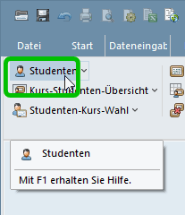 Vorhanden sind dort die beiden Schnittstellen Studenten und Kurswahl der Studenten. Wenn Sie eine der Schnittstellen mit der Maus markieren und dann F1 drücken, wird übers Internet der Schnittstellendatei-Aufbau angezeigt.