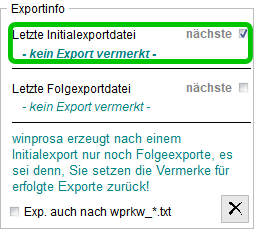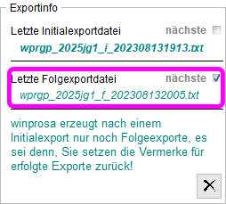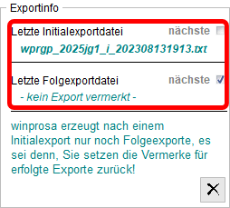 Falls bei Exportinfo oben der Haken bei nächste ☑ fehlt, klicken Sie darunter auf x (beides blau markiert).